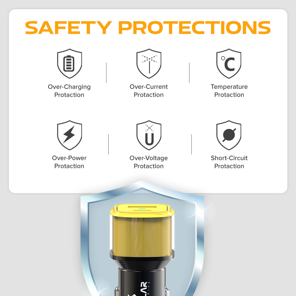 The XC-36 TORQ CHARGE GT is engineered for drivers who expect desktop-level charging performance inside their car. With a massive 130W max output and an advanced smart chip, this charger intelligently delivers power exactly where it’s needed—fast, stable, and safe.